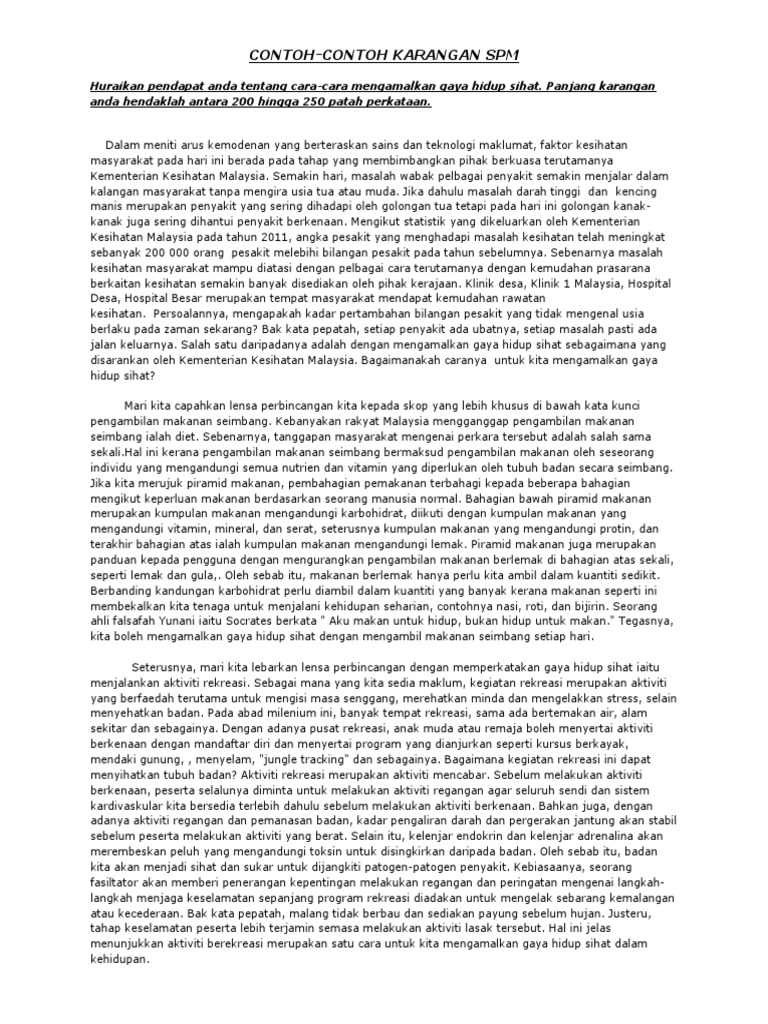 CONTOH-CONTOH KARANGAN SPM Huraikan pendapat anda tentang cara-cara mengamalkan gaya hidup sihat. Pembinaan rumah warga tua. KARANGAN CEMERLANG SPM - Kebaikan Amalan Rumah Terbuka Kebaikan Amalan Rumah Terbuka.